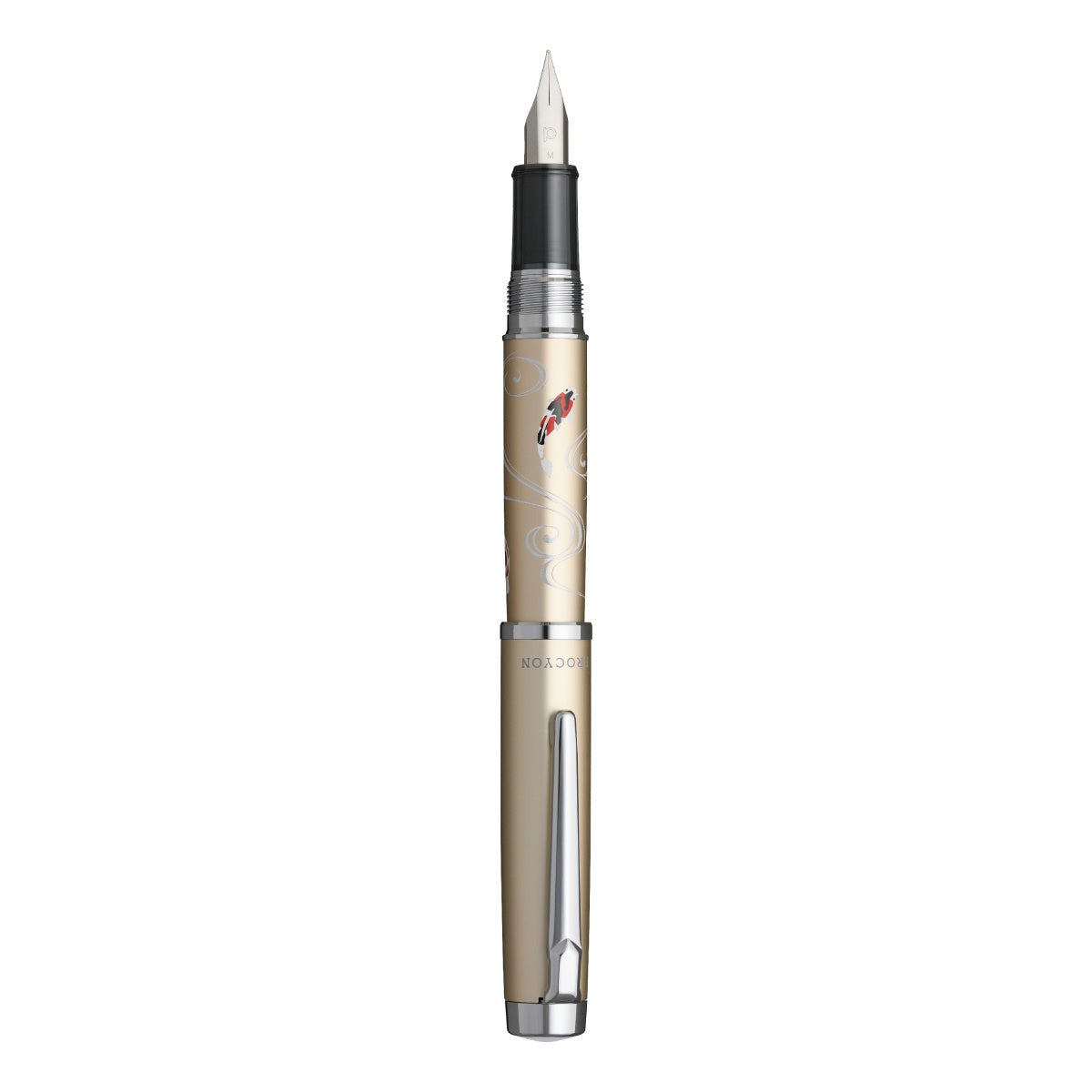 New motifs for the Procyon fountain pen from Platinum: the classic "Nishikigoi" pattern as a maki-e coating on the metal barrel of the writing instrument. Koi carp meander on champagne-colored waves.