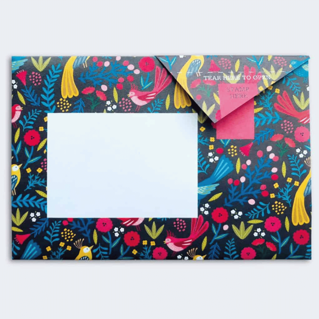 Pigeon is a small manufacturer in England that has developed a truly beautiful stationery: a blend of origami and airmail, they developed stationery sheets that are first beautifully printed and then folded. The letter is sealed by affixing a stamp.