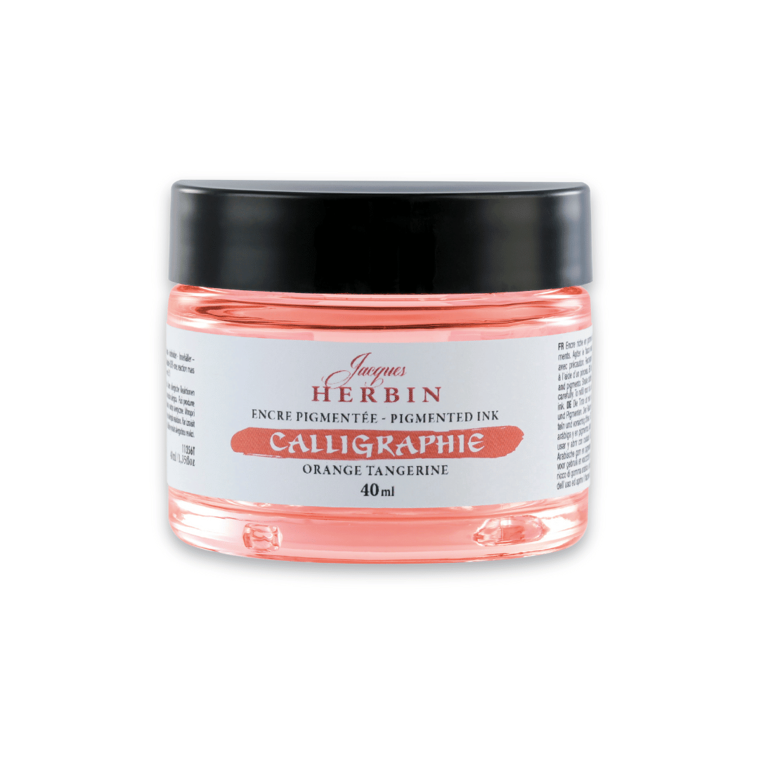 Herbin präsentiert eine neue Serie von Kalligraphietinten auf der Basis von Gummiarabikum (außer Weiß) und Pigmenten: Das traditionelle Rezept der Kalligraphen. Dieses vegane Sortiment umfasst 15 intensive Farbtöne für kreative Schreib- und Zeichenprojekte. Sie können auch pur oder verdünnt für vielfältige Effekte verwendet werden. Die stabile, breite Glasflasche ermöglicht ein einfaches Eintauchen des Federhalters.