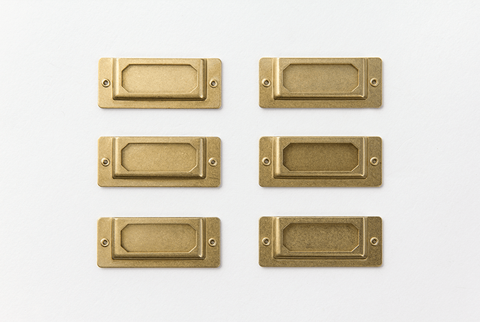 Inspiriert von alten Sortierkästen oder Schubladenkästen, die einen Metalleinschub haben zur Beschriftung des Inhaltes, fertigt Traveller Company diese wunderschönen gleichen Messingplatten. Diese haben Klebepunkte auf der Rückseite, so dass man diese entweder auf sein Notizbuch oder Kisten damit versehen.