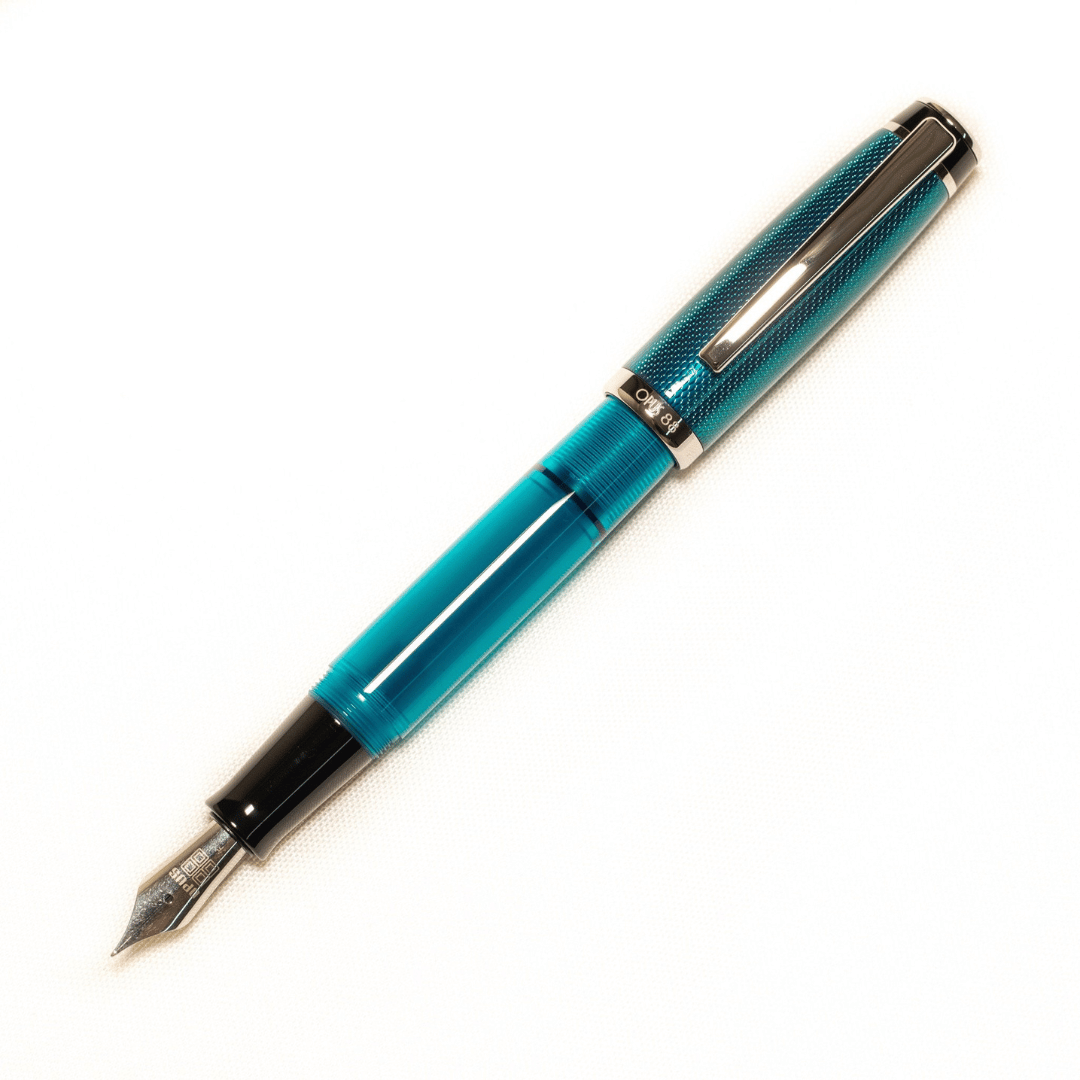 Das besondere an allen Füllhaltern von Opus 88 ist, dass sie allesamt als Eye Droper funktionieren: die Tinte wird also mithilfe einer Pipette direkt in den Korpus gefüllt. Mit dem hinteren Knauf dreht man die Dichtung zum Tintenleiter auf bzw. für den Transport wieder zu.